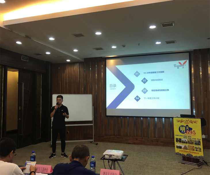 出席本次會議的人員有蘇皖區域明天695全體客戶和蘇皖區域全體人員,公司也對此次會議有著高度的重視,會議中明天種業胡總致辭:“出席會議的各位都是農業方面的精英,翹楚,奮戰在國家農業第一線的英雄,是在疫情肆虐中華大地時,仍然和明天種業奮斗在一起力保春耕的英雄”。同時,胡總也表達出對蘇皖區域上一年度營銷工作的肯定,對參加會議的合作客戶表示感謝,希望明天695的家人跟隨江蘇明天種業的步伐,共同努力,持續開創新的未來。”