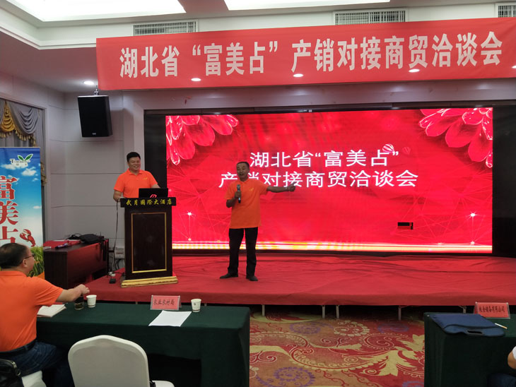 2020年9月15-16日,湖北省(鄂東南地區)“富美占”產銷對接商貿洽談會在湖北省武穴市召開。武穴市農業農村局領導,武穴市糧食儲備有限公司領導、武穴市隆旺合作社負責人、江蘇明天種業科技股份有限公司代表、武穴市金磊糧油/武穴市嘉欣米業/武穴市勝斌米業等多家米企負責人以及經銷商、種田大戶嘉賓150余人蒞臨本次會議。