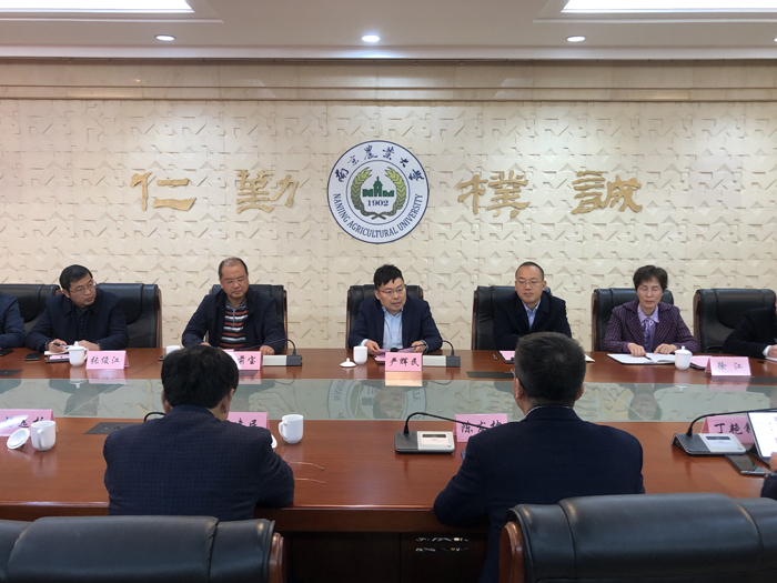 南京農業大學副校長丁艷峰、江蘇省種子管理站站長何金龍、江蘇明天種業總經理嚴輝民、南京農業大學研究院院長姜東、農學院院長朱艷、特約教授盛勝蘭研究員、江蘇明天種業副總經理王波、徐江等相關領導、專家參加了此次簽約活動。