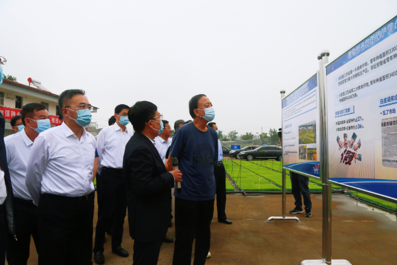 武維華考察了公司科研基地無土硬質化育秧,通過展示牌了解了公司近年來在植物新品種保護方面做得工作和成效,詢問了公司近年來發展情況以及未來規劃、科技創新及科企合作情況,鑒定品嘗了公司自主選育的優質秈米和粳米。他充分肯定了公司在植物新品種權保護方面所做的工作。他強調,企業在生產經營過程中,要嚴格按照《種子法》要求,進一步提高運用法治思維和法治方式推動現代種業高質量發展的能力和水平。他希望,企業要通過深入貫徹實施種子法,加強種質資源保護利用,提升種業自主創新能力,為保障國家糧食安全作出新的更大貢獻。