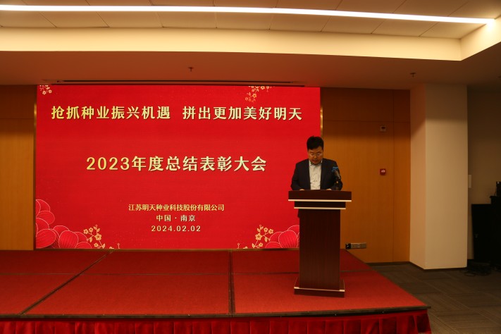 大會首先由總經理嚴輝民以公司近幾年的行動綱領搶抓種業振興機遇,拼出更加美好明天”為主題,作2023年度工作報告